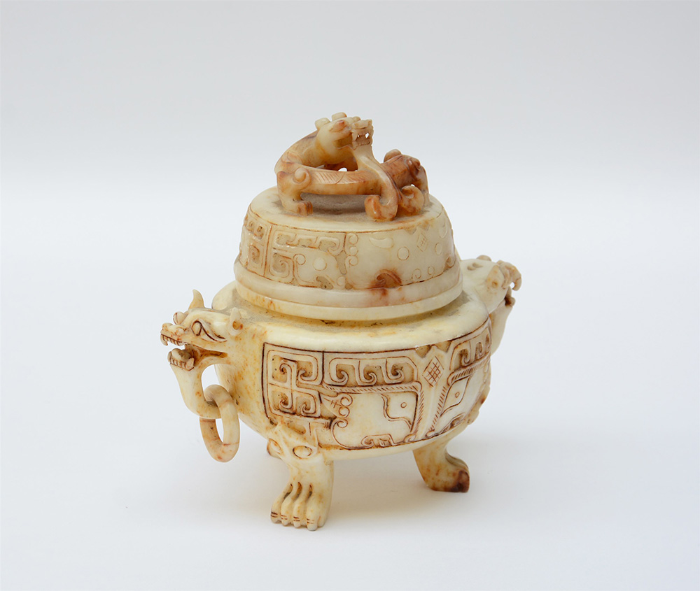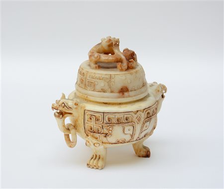 Incensiere tripode in pietra dura con coperchio (lievi difetti)(h. 22 cm.)-EN.