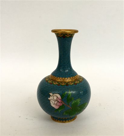 Vaso in metallo cloisonné con decoro floreale su fondo turcheseCina, sec. XX...