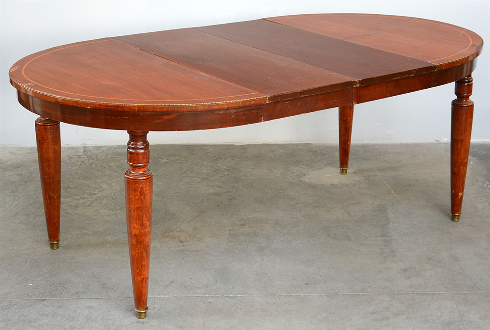 Tavolo ovale allungabile con gambe tornite e piano filettato (cm 124x79x112) (difetti)