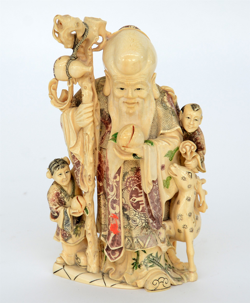 Shoulao con cervo e fanciulli, firma alla base (h. 22 cm.)(difetti) Cina, sec. XX