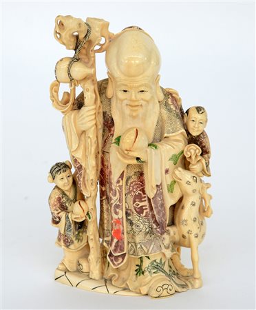 Shoulao con cervo e fanciulli, firma alla base (h. 22 cm.)(difetti) Cina,...