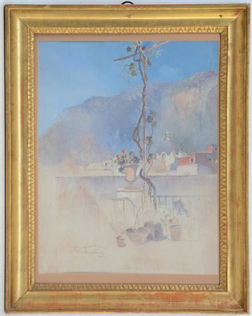 Firma indecifrata "Capri" tecnica mista sucompensato (cm 50x40) Firmato, locato ed iscritto in basso a sinistra. In cornice