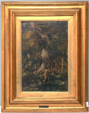 Ignoto "Figure in un bosco" olio su tavoletta (cm 33x22) In cornice