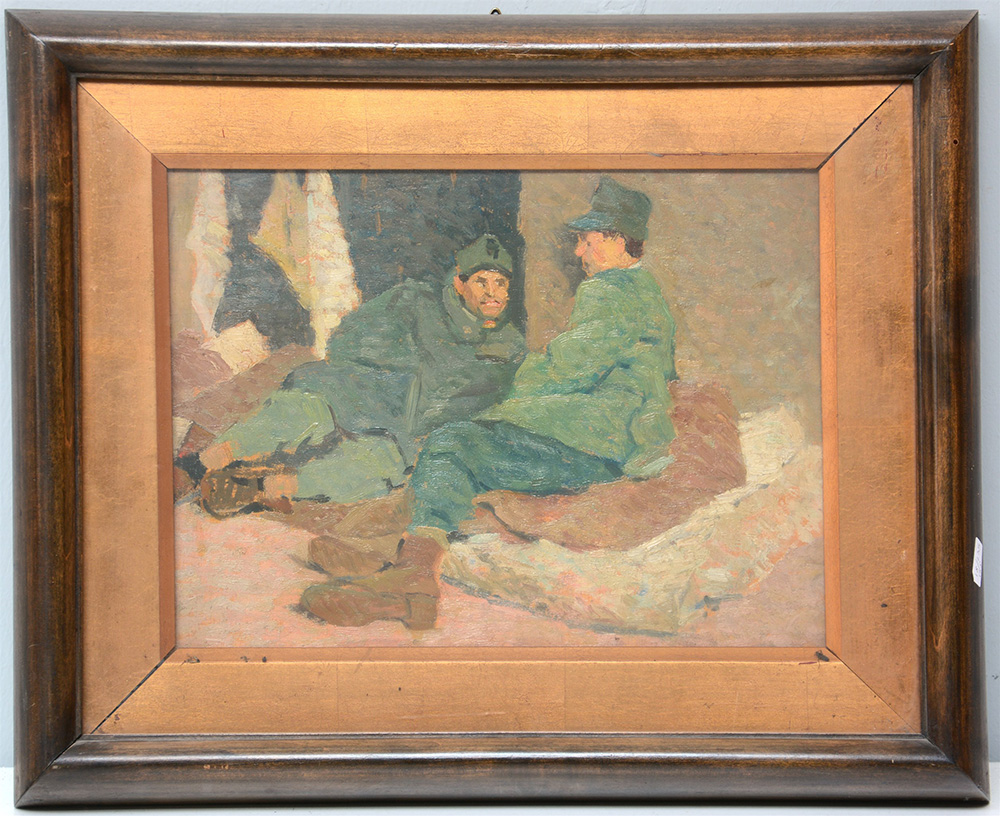 Enzo Ceccherini (Sesto Fiorentino 1894 - 1971)(Attribuito) "Al bivacco" olio...