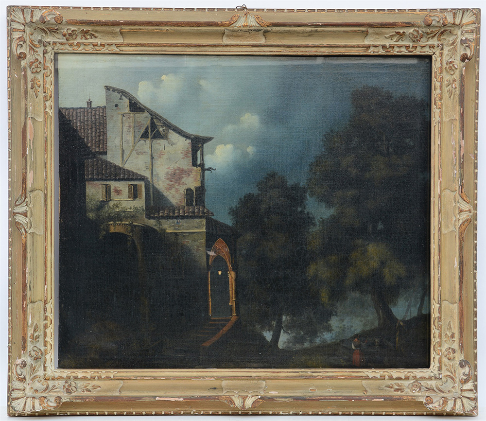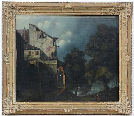"Paesaggio notturno" olio su tela (cm 67x81) Firmato in basso a sinistra. In cornice