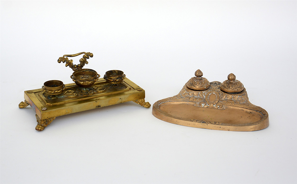 Lotto composto da due calamai in metallo di decori diversi (difetti)