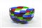 Manifattura di Murano. Coppa "pezzata" in vetro soffiato incolore blu, rosso e verde. Anni 70-80 (d cm 24,5)