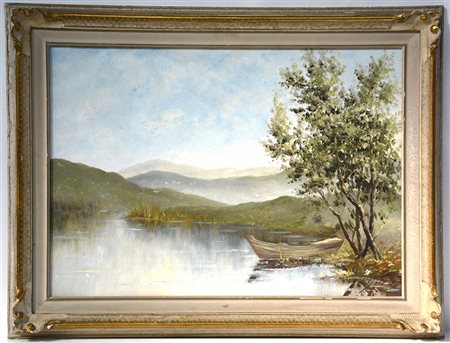 "Pusiano" olio su tela (cm 50x70) firmato in basso a destra, iscrittoe titolato al retro, in cornice