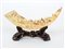 Zanna intagliata con fanciulli e pescatori base in legno (l. 27 cm.)(difetti)...