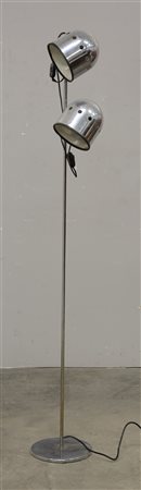 Lampada da terra in acciaio cromato con due faretti orientabili. Italia, anni...