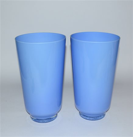 Lotto composto da due vasi a forma cilindrica in vetro opacizzato color celeste (h cm 30) (lievi difetti)