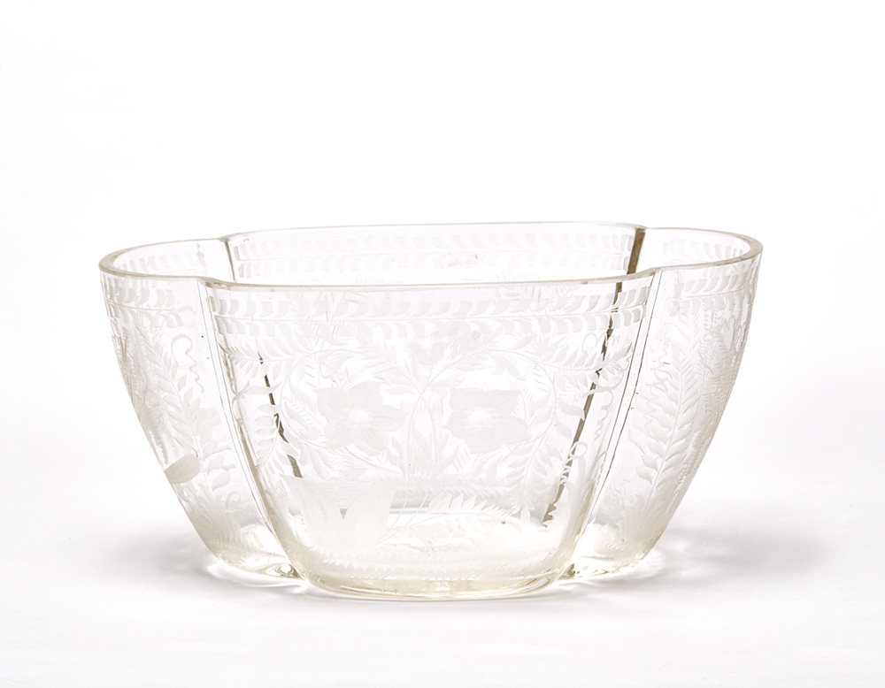 Manifattura di Murano. Vaso in vetro con figurazioni naturalistiche incise al...