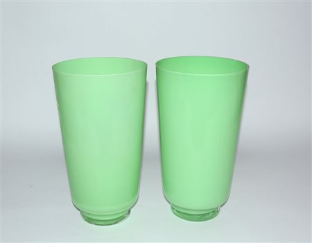 Lotto composto da due vasi a cilindro in vetro verde opacizzato (h cm 30)