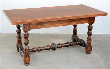 Tavolo in legno dolce con gambe tornite riunite da traversa (cm 172x82x87)...