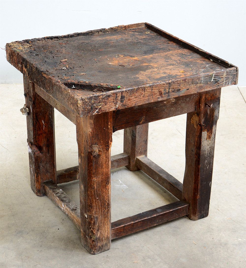 Banchetto da lavoro quadrato con gambe e traverse dritte (cm 60x6260)(difetti)