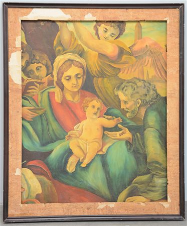 Ignoto "Madonna con bambino e angeli" olio su compensato (cm 113x93) in...