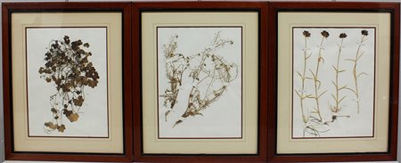 Erbario. Tre cornici contenenti campioni di erbe e fiori con etichette esplicative al retro (cm 50x40)