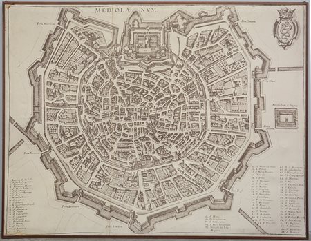 Stampa su tessuto raffigurante un’antica mappa di Milano (cm 152x198), in...