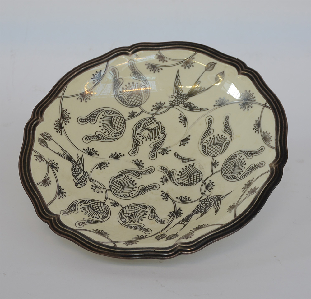 Manifattura di Rosenthal, centrotavola in porcellana con applicazioni in lamina d’argento a decoro naturalistico, anni '30 del sec. XX (d cm 34) (lievi difetti)