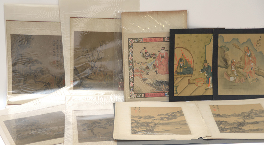 Diciassette pagine di album, varie tecniche e soggetti, misure diverse (difetti)