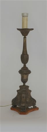 Candeliere in metallo argentato e sbalzato a motivi vegetali. Sec. XVIII (h....