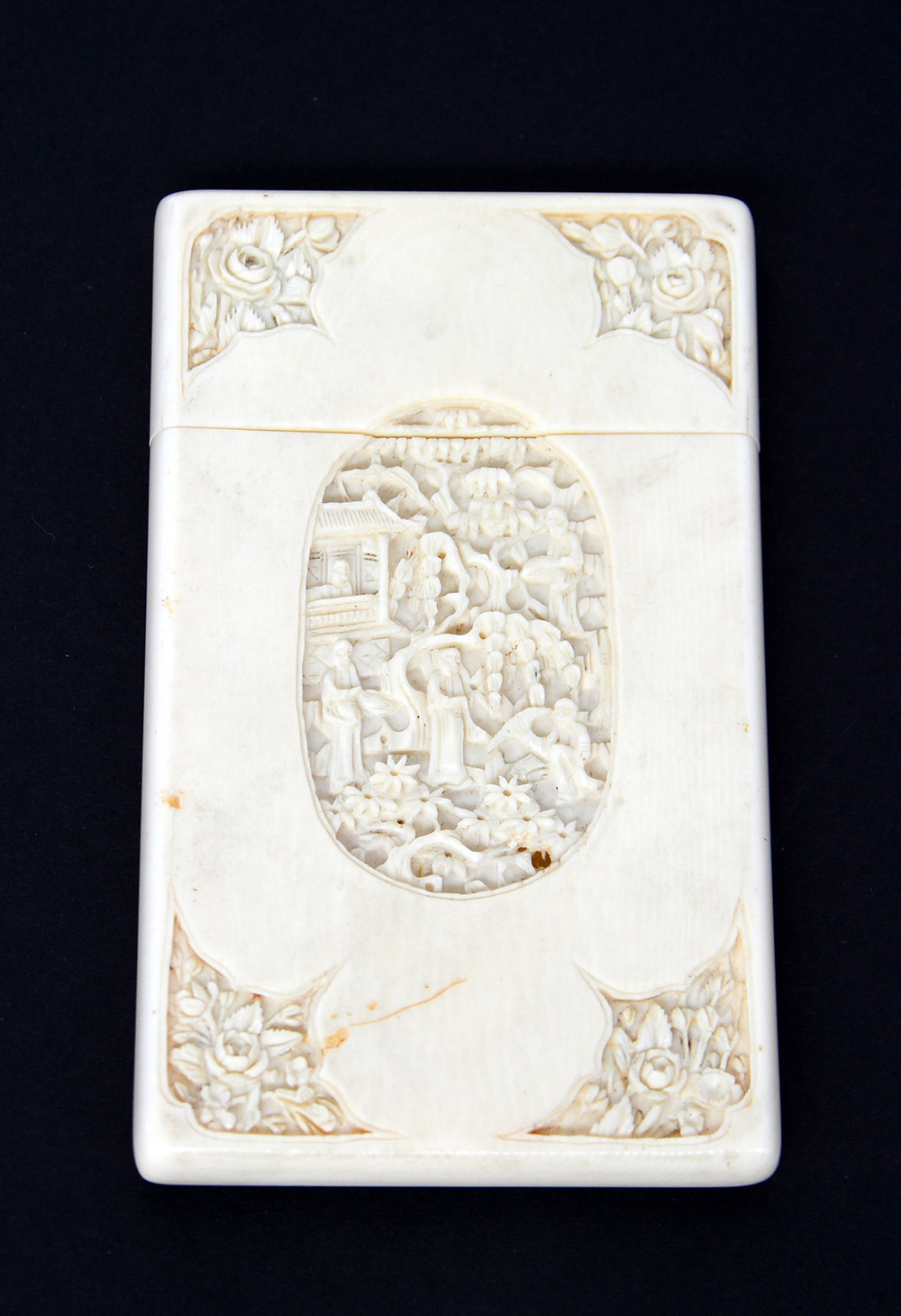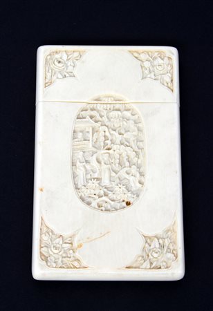Portabiglietti da visita inciso e intagliato a paesaggi. Cina, secolo XX