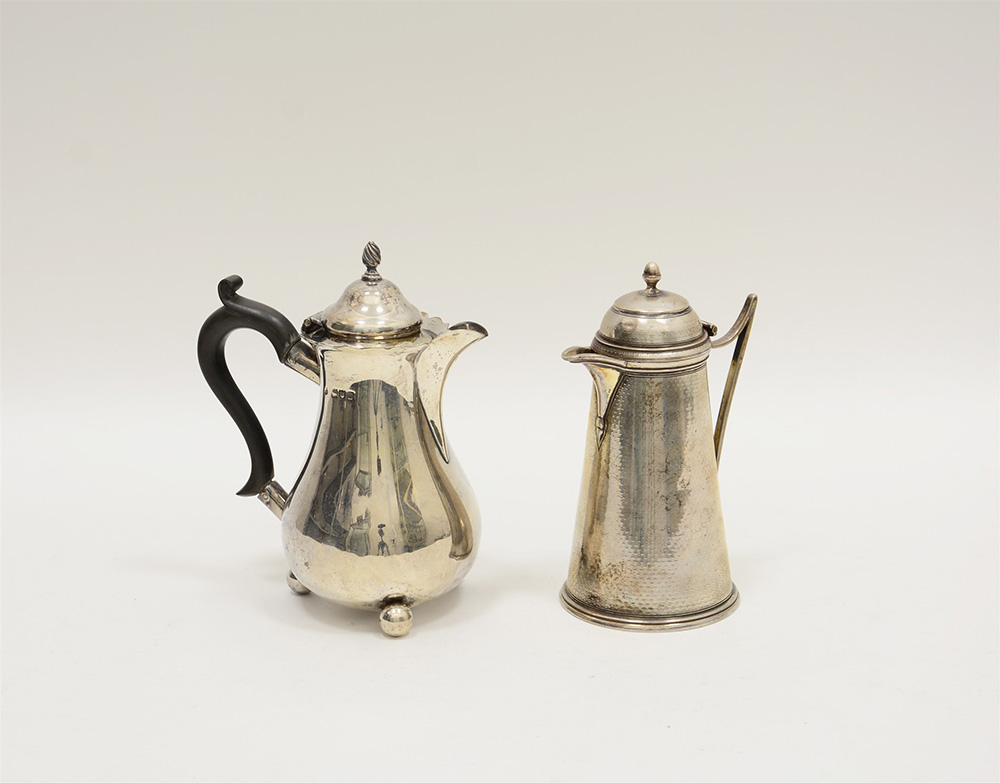 Lotto in argento composto da una caffettiera e un aversatoio. Londra, fine...