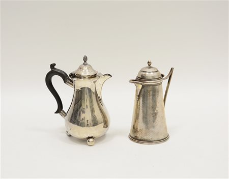 Lotto in argento composto da una caffettiera e un aversatoio. Londra, fine sec. XIX-inizio sec. XX (gr lordi tot 500 ca.) (h. max 16 ca.) (difetti)