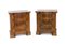 Coppia di comodini impiallacciati in noce e radica di forma sagomata, tre...