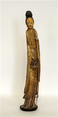 Scultura in avorio raffigurante immortale femminile, base in legno...