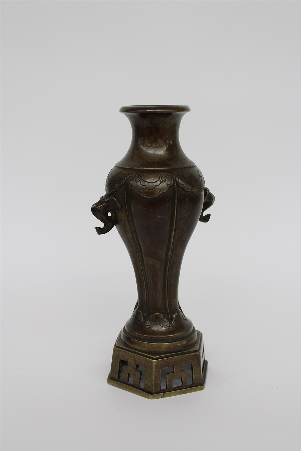 Vaso in bronzo dalla forma lobata con doppie anseCina, sec. XX (h. 30...