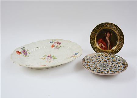 Lotto composto da due ceramiche della manifattura di Vienna e una antica alzatina di Deruta (difetti e restauri)