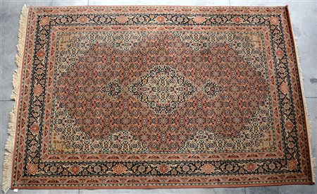 Tappeto meccanico, secolo XX. Decoro orientale nei toni del rosa, bianco e...