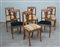 Gruppo di sei sedie in noce del sec. XIX con schienale a giorno decorato da...