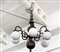 Lampadario in stile olandese a sei braccia sagomate, paralumi in vetro (h cm 96)(difetti)