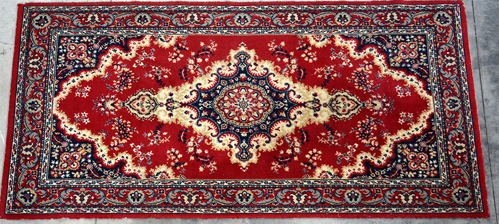 Disegno orientale a medaglione su fondo rosso. (cm 201x99) (difetti)