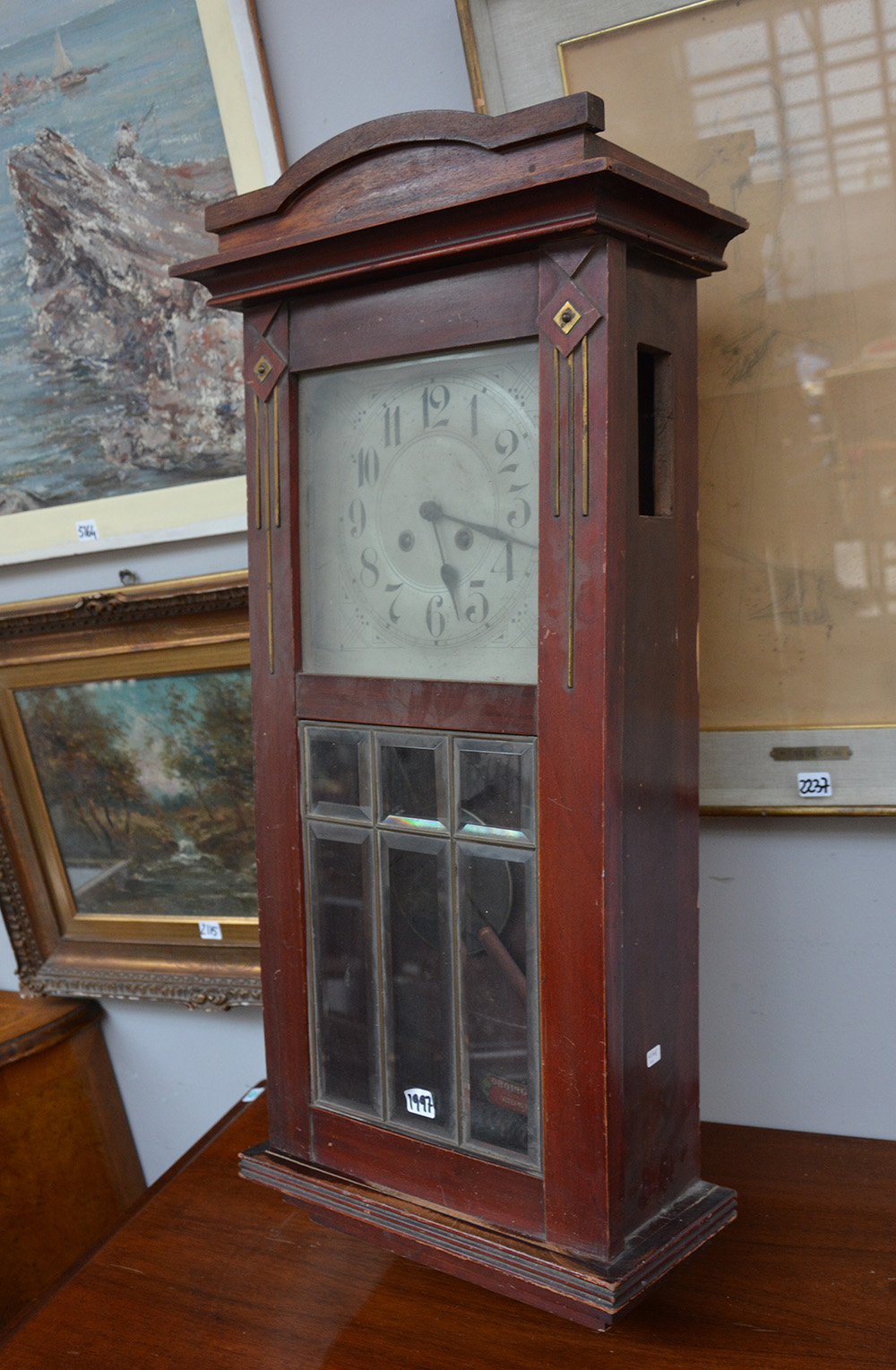 Orologio da muro con cassa mogano, quadrante e numeri arabi, movimento con carica settimanale (h cm 76) (difetti)