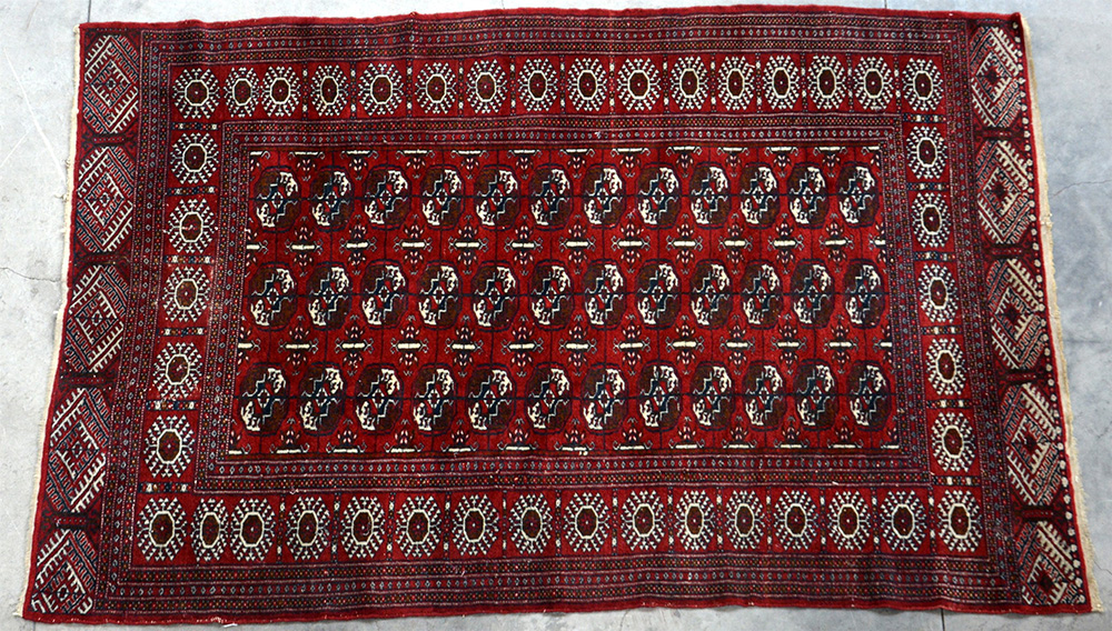 Disegno a Gul su fondo rosso. (cm 192x124) (difetti)