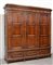Armadio a tre ante in noce e radica a due cassetti nella base, piedi torniti....