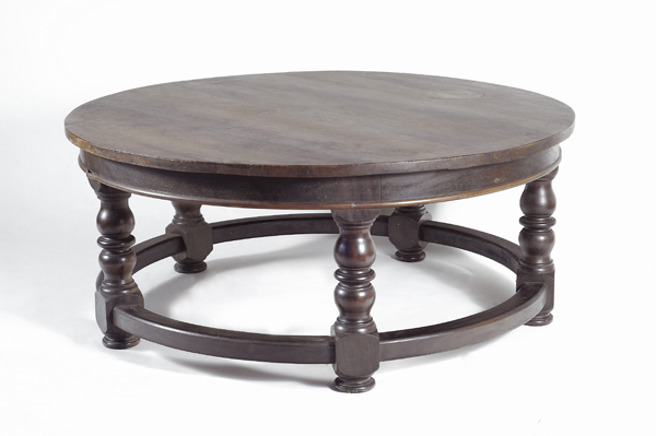 Lot 112 | Tavolo tondo su sostegni a balaustro riuniti da traversa esterna circolare,...