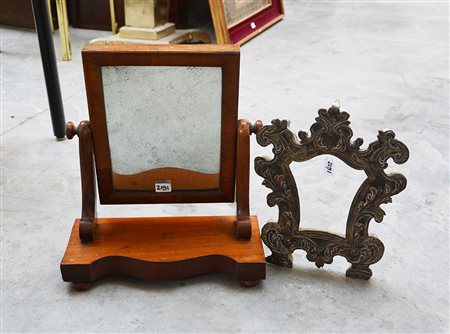 Lotto composto da una psiche da tavolo in noce con montanti a base sagomati...