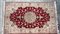 Annodato in lana e seta. Disegno a medaglione beige su fondo rosso. (cm 155x100) (difetti)