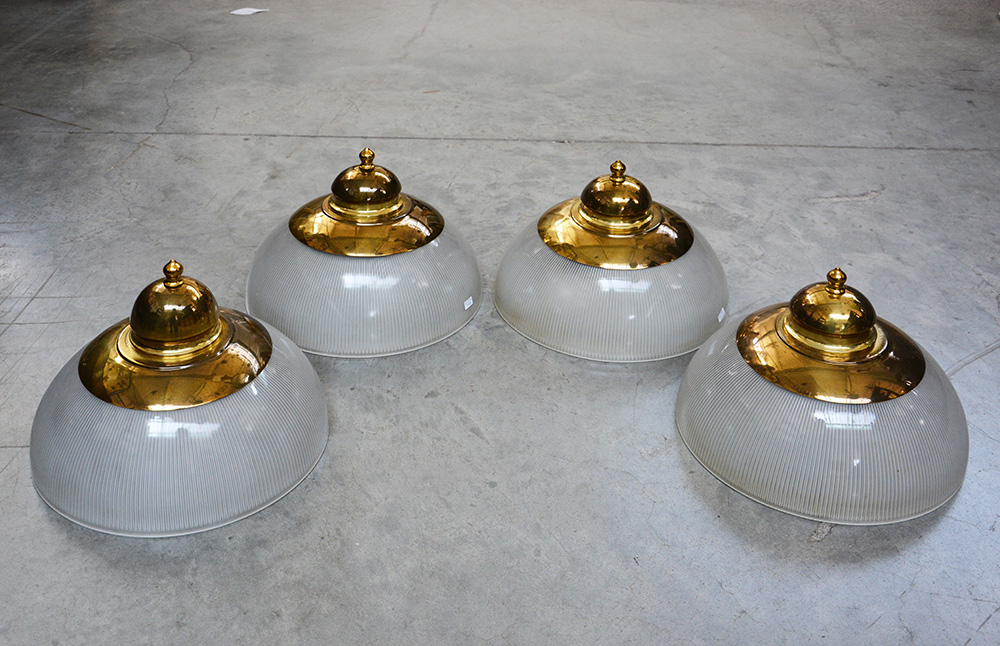 Gruppo di quattro plafoniere. Italia, anni '70. Vetro stampato e ottone. (h cm 23; d cm 26) (lievi difetti)