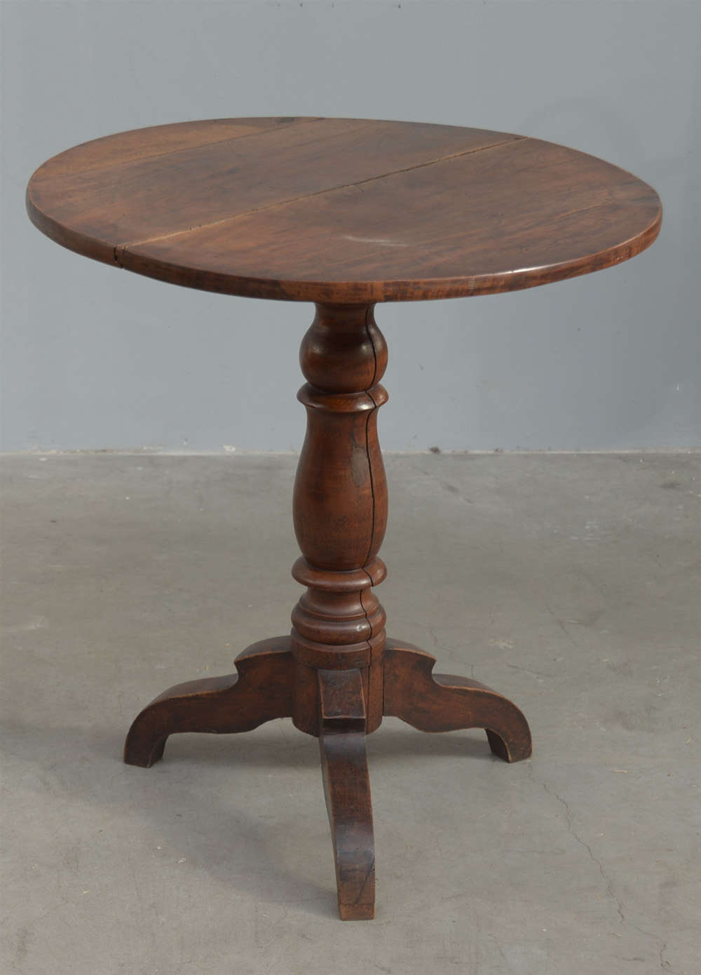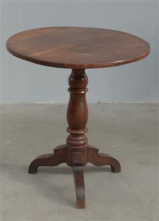 Tavolo da salotto di firma tonda in noce con gamba centrale a colonna tornita terminante con piedi sagomati (h. cm 80 x d. cm 70)
