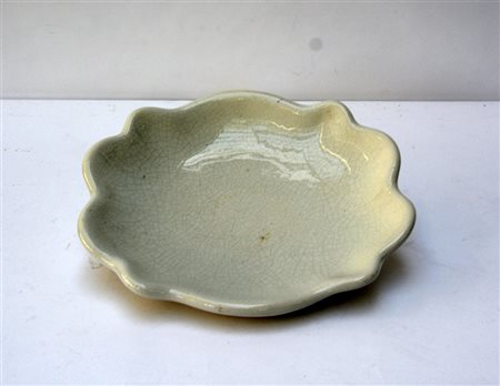 Centrotavola in ceramica smaltata in bianco sotto vetrina. Milano, anni '40. Marcato in verde sotto la base con il simbolo della manifattura e il numerale "TI_514".