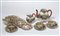 Servito in porcellana dipinta con decori floreali e figure, composto da: 3...