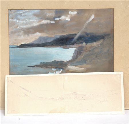 Lotto composto da un acquerello raffigurante Mentone e un disegno raffigurante Nizza