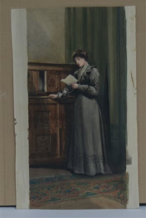 "La lettura 1903" acquarello su carta (cm 43x26) firmato e datato in basso a sinistra