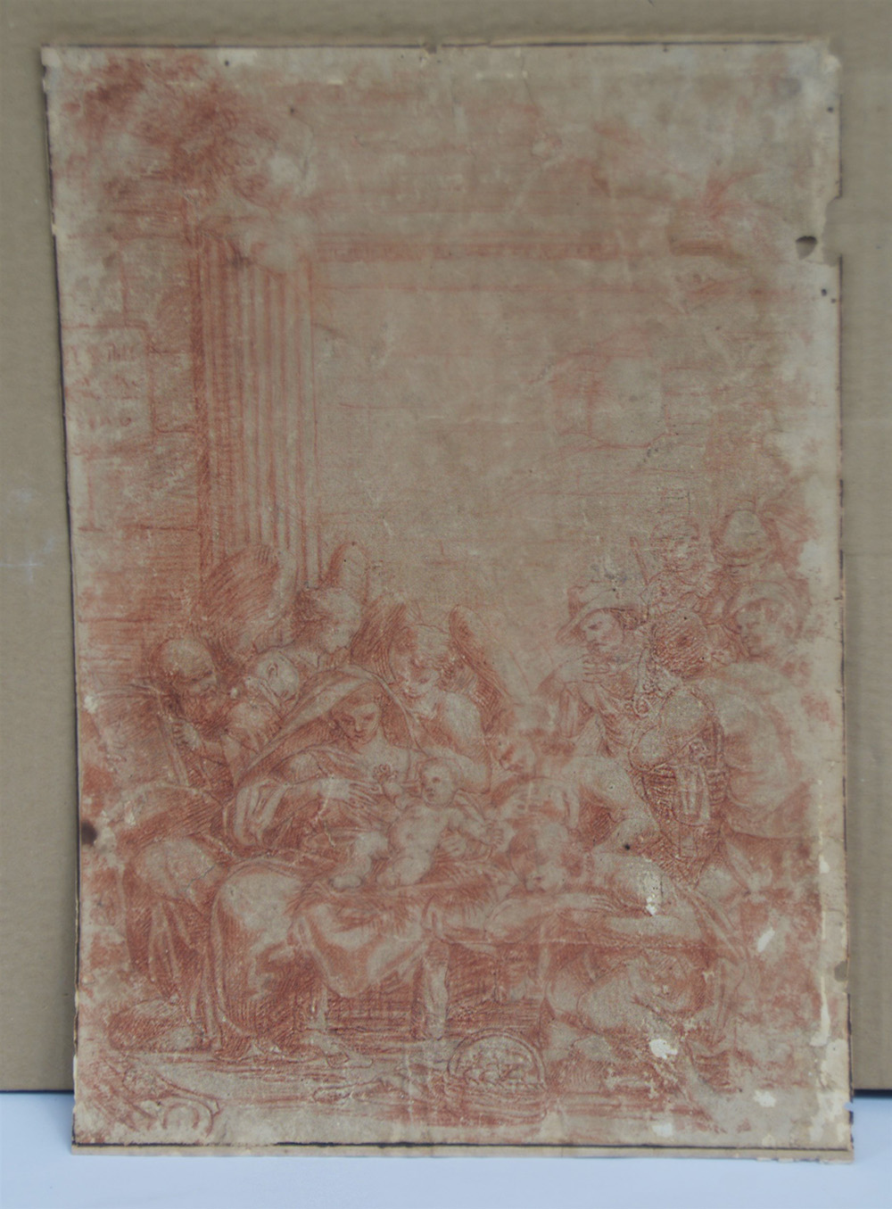 Antico disegno raffigurante "Adorazione" sanguigna su carta (mm 400x280) (difetti)