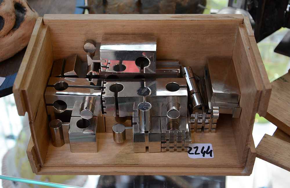 Firma indecifrata, scultura scomponibile in acciaio firmata e numerata 312/1000 (difetti)In scatola di legno.
